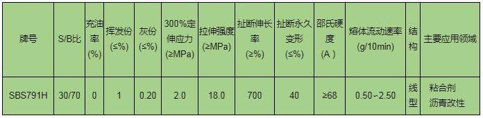 熱塑性丁苯橡膠HT791H(SBS1301-1)加入瀝青中,可使瀝青克服冬脆夏軟的缺點,既可以用于鋪設和修補高級公路