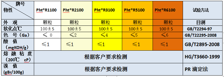 Pht?-R1100、Pht?-2100、Pht?-3100、Pht?-5100、、Pht?-6100精C5系列石油樹脂是適用于熱熔型路標漆的改性石油樹脂。它能增強涂料的韌性、硬度及附著力,并形成平滑的漆面,而且通過添加助劑,使樹脂在四季中始終處在一種穩定的狀態,并和松香類樹脂、萜烯類樹脂、碳九石油樹脂混溶性佳。在高檔油漆復配中,可使油漆漆膜形成耐水、耐酸耐堿、耐紫外線、耐化學品的特性,并使外觀光亮度及干燥性都有明顯改善,其中Pht?-R1100、Pht?-R2100經過氫化或半氫化的碳五石油樹脂,外觀顏色水白色,200度3個小時熱穩定性不變色。是生產更高檔品質的熱熔路標涂料的助劑,性能更佳。